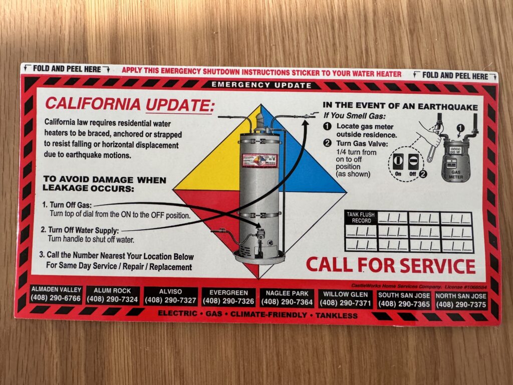 The sticker showed a quick guide on how to shut off your gas line in case of a leak or emergency — something every homeowner should know, but many don’t. It was practical, clear, and immediately helpful. And the best thing about it is you could stick it right on your water heater for easy access.
